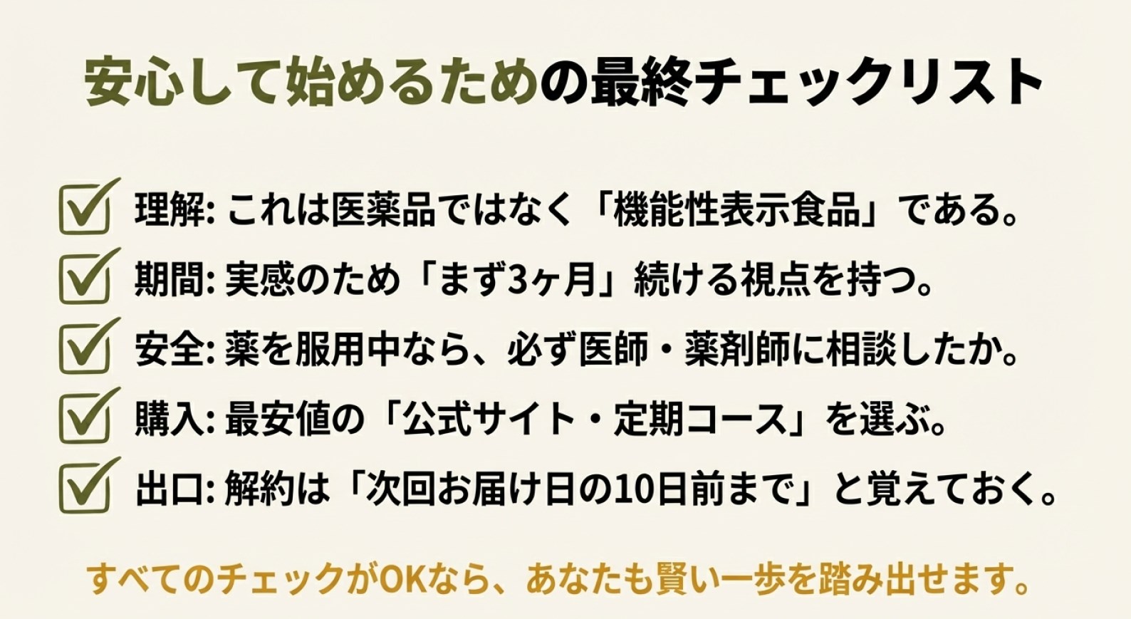 結論として、「効果なし」という口コミは個人の体質や摂取期間、生活習慣による差が大きく影響していると考えられます。医薬品ではないため過度な期待は禁物ですが、生活習慣の見直しと併せて継続することが推奨されています。