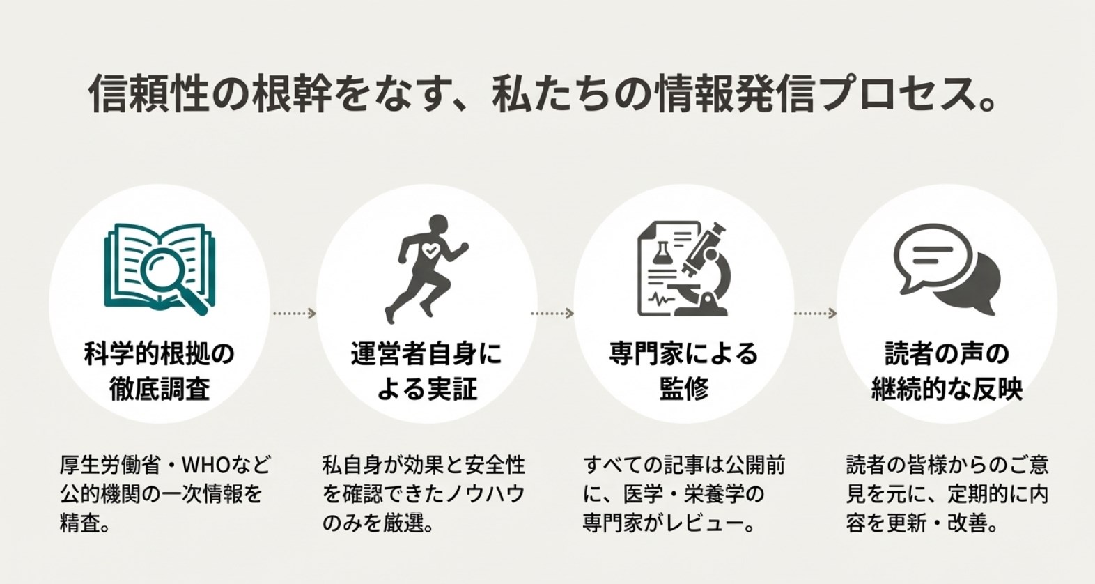 - 専門家による監修:すべての記事は公開前に、医学・栄養学の専門家による多角的な視点でのレビューを受けます。