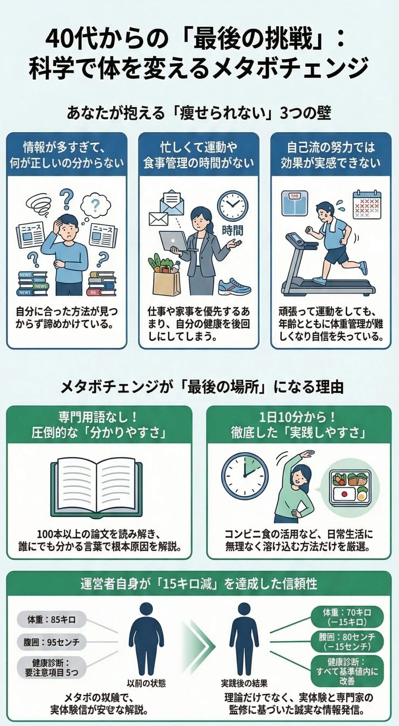 40代からの挑戦。-15kgを実現した科学的メソッドで、 あなたの「変わりたい」を、最後の挑戦にする場所。